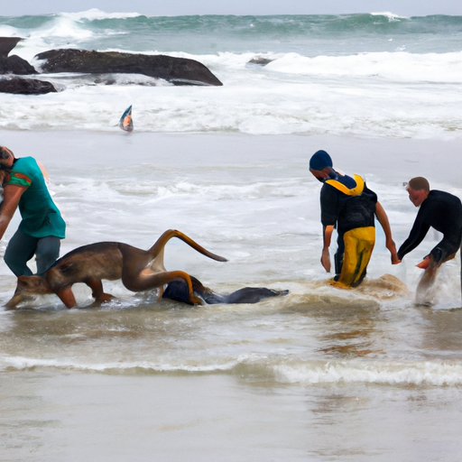 In a rare moment of heroism, a group of beach-goers in Australia took it upon themselves to rescue a disoriented wallaby that was found floundering in the surf. The animal’s confusion and distress were apparent, as it struggled to stay afloat amidst the turbulent waters.
