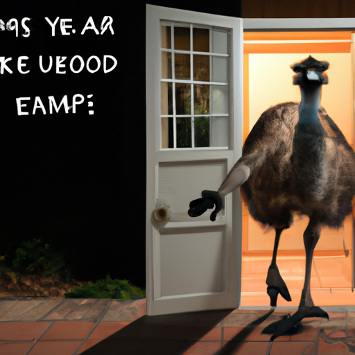 Authorities suspect the emu is on a door-to-door recruitment campaign. Reports have surfaced of a flock of escaped birds from a local zoo attempting to win over new allies in their bid for global domination (or at the very least, escape from captivity).