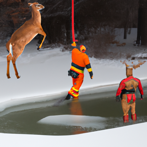 Once they had a suitable ladder, they tip-toed onto the ice like ballerinas and carefully maneuvered towards the floundering deer. With precision and grace, they reached the deer and pulled it to safety, most likely while humming the theme from “Baywatch.”