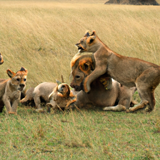 “Father Lion Enjoys Playful Bonding Time with Over-Enthusiastic Cubs” In a heartwarming display of nature’s beauty, a father lion was seen bonding with his playful cubs in the African savanna