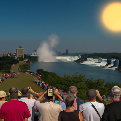 Niagara Falls, NY – As the Great American Eclipse obscured the sun’s rays along a path traversing the United States, a crowd of over 300 brave souls took to the edge of Niagara Falls in their finest sun costumes to soak up some rays before the inevitable darkness set in