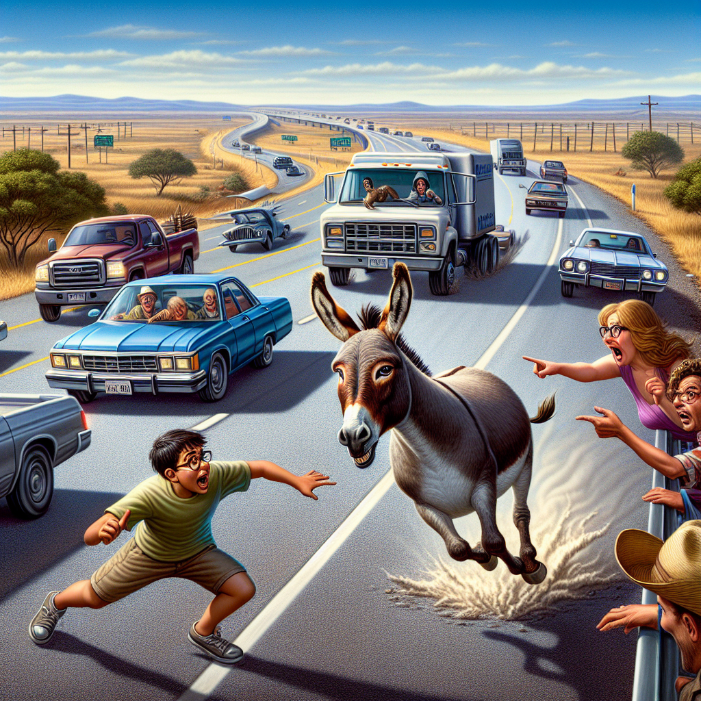 Before authorities could intervene, Texas Jack was last spotted trotting into the sunset, potentially plotting his next daring escapade. Local animal control was dispatched, albeit with a sense of humor about the situation. “Honestly, we simply weren’t prepared for a rogue donkey chase,” confessed Officer Bill Rogers. “It’s Texas; we have many four-legged friends here, but hardly one with such enthusiasm for highway exploration.”