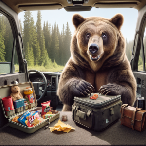 In a brazen display of ursine audacity, a sneaky bear was spotted rummaging through an unlocked vehicle in a quiet suburban neighborhood yesterday evening. Eyewitnesses claim the bear, described as “fluffy” and “completely unafraid of consequences,” strolled up to the vehicle, gave the door a casual sniff, and then proceeded to open it with ease.