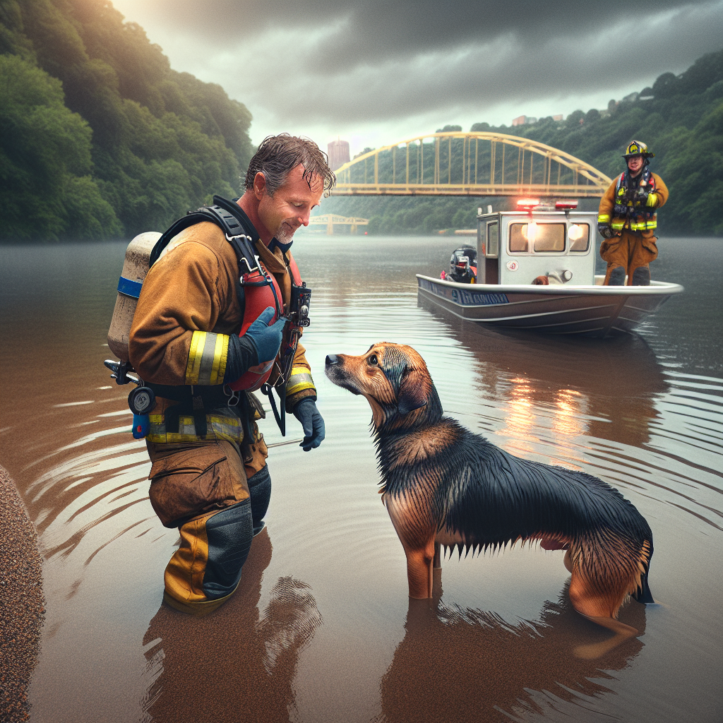 Pittsburgh, PA – In a daring display of aquatic acrobatics, a dramatic rescue unfolded on the Ohio River yesterday evening, as a brave firefighter plucked a bedraggled but triumphant pup from the jaws of aquatic despair.