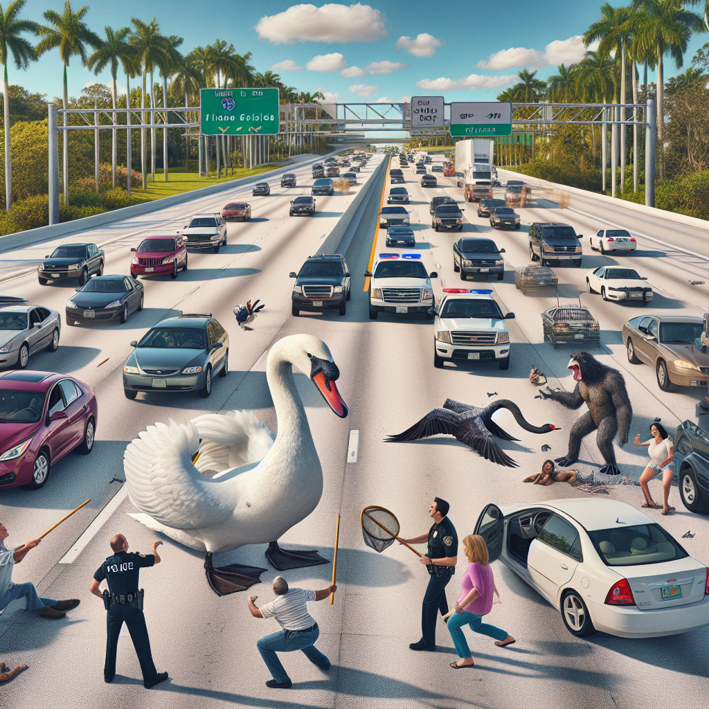 In a bizarre incident that brought the usually sleepy streets of Florida to a standstill, a marauding swan led police on a wild goose chase down a busy highway yesterday evening.