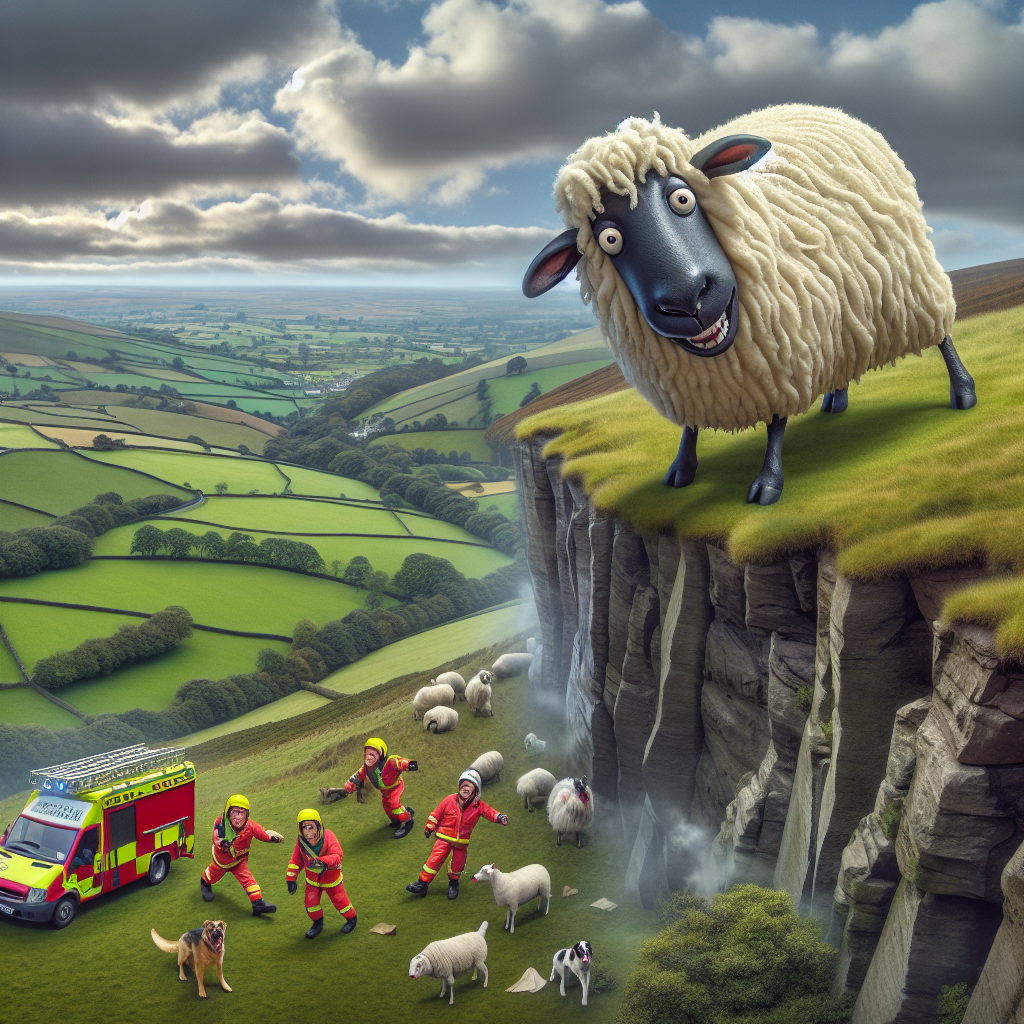 BREAKING: Baa-dly Behaving Sheep Causes Chaos in English Countryside In a daring rescue operation that will go down in history as one of the most absurd, a sheep was plucked from the jaws of danger on a cliff in rural England yesterday