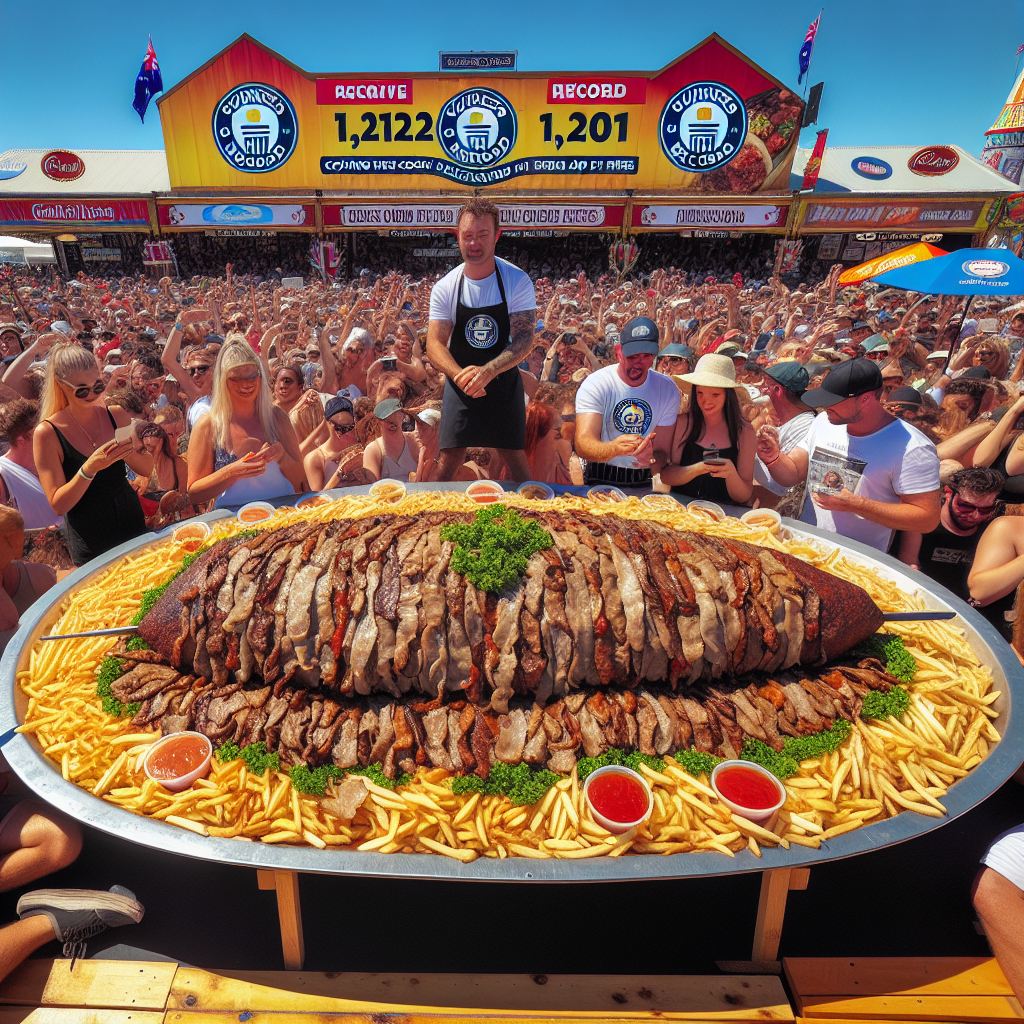 BREAKING: Australian Restaurant Cooks Up MAMMOTH 1,212 POUNDS OF KEBAB MEAT AND FRIES, SHATTERING GUINNESS WORLD RECORD AND FEEDING ENTIRE FESTIVAL In a jaw-dropping display of culinary excess, an Australian restaurant has cooked up a whopping 1,212 pounds of kebab meat and French fries, leaving onlookers agog and Guinness World Records officials scrambling to verify the behemoth achievement