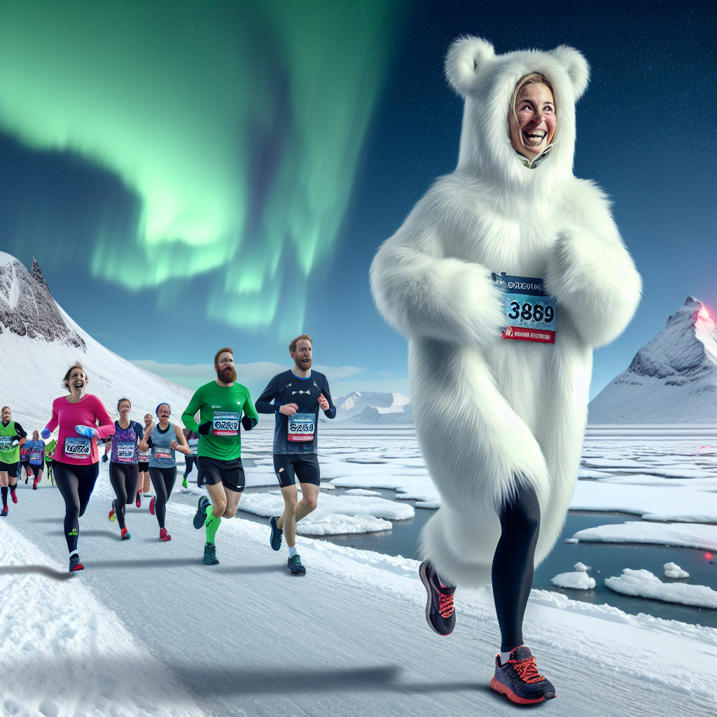 British Woman Dons Polar Bear Costume to Conquer Norwegian Marathon In a bizarre and impressive display of endurance, a British woman recently completed the Norwegian Arctic Marathon, donning a polar bear costume and shattering expectations with her remarkable time