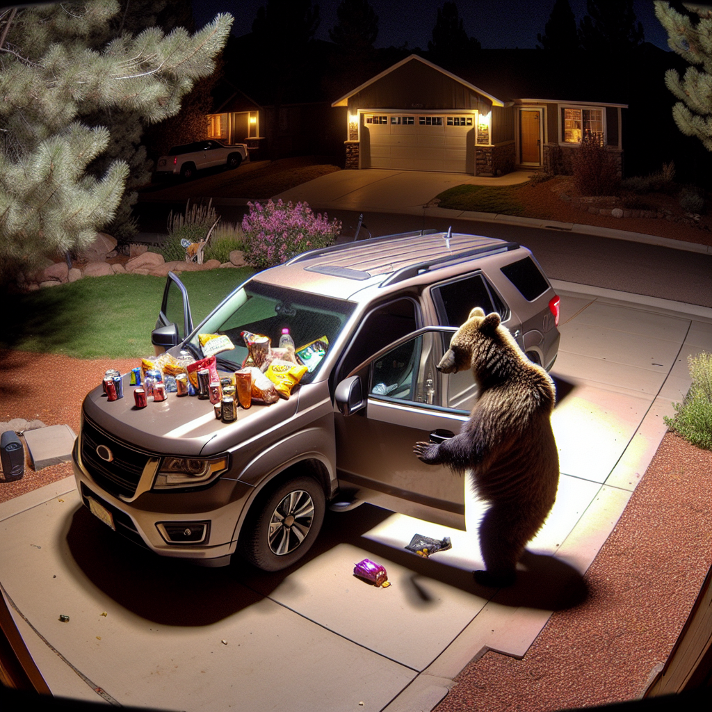 BEAR BREAKS INTO PARKED CAR IN COLORADO, SECURITY CAMERA CATCHES IT ALL ON TAPE A home security camera in a quiet Colorado neighborhood captured a shocking moment recently, as a bear was seen opening the door to a parked car and climbing inside to rummage through its contents