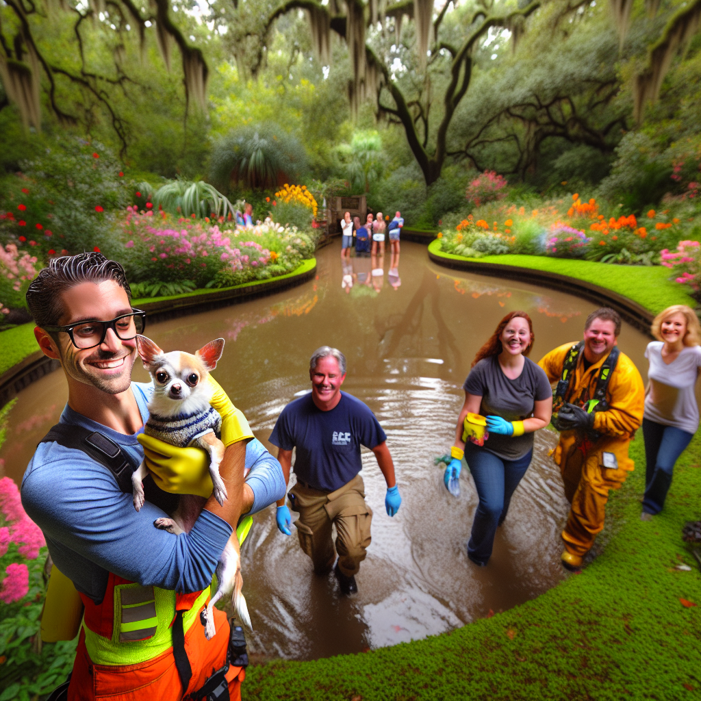 MIRACLE IN THE BAYOU: CHIHUAHUA RESCUED FROM HOUSTON BOTANIC GARDEN Houston, TX – In a dramatic rescue, a team of emergency responders and garden staff worked together to save a tiny Chihuahua that had become stranded in the bayou at the Houston Botanic Garden on Wednesday afternoon
