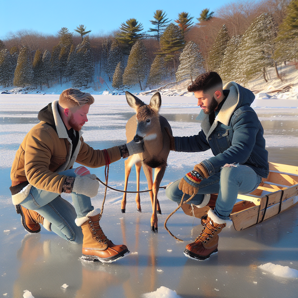 Michigan Brothers’ Daring Rescue of Stranded Deer In a heartwarming display of compassion and quick thinking, two brothers from Michigan recently came to the aid of a deer that found itself in a precarious situation on a frozen bay in the state’s Upper Peninsula