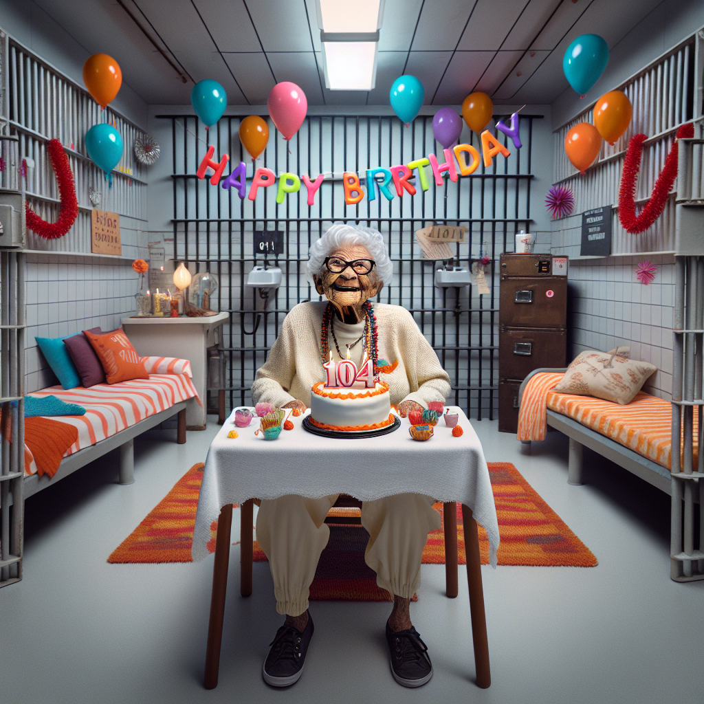 HEADLINE: 104-Year-Old Woman’s Unconventional Birthday Bash: A Day in Jail SUBHEADLINE: Nonagenarian Fulfills Bucket List Wish in Unique and Unforgettable Way NEW YORK, NY – In a bizarre and heartwarming tale, a 104-year-old woman marked her birthday in a most unusual way: by spending the day in jail