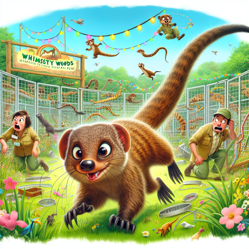 BREAKING: ROGUE MONGOOSE ON THE LOOSE! In a daring escape that has left wildlife experts baffled, a mischievous mongoose named Monty has busted out of his enclosure at Whimsy Woods Wildlife Park and was spotted a staggering 15 miles away from home