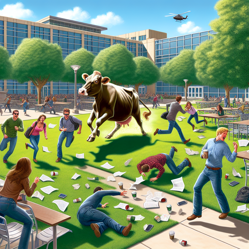 BREAKING: ROGUE BOVINE WREAKS HAVOC ON KANSAS CITY, UNIVERSITY CAMPUS In a bizarre incident that has left residents of Manhattan, Kansas, moo-ving in shock, a daring cow named Bessie made a break for freedom, leaving a trail of chaos and confusion in her wake