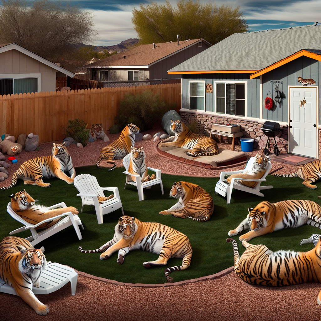 “I was just mowing my lawn when suddenly, a tiger jumped out from behind a bush and started chasing me,” said local resident, Jane Doe. “I mean, I’ve seen some weird stuff in Pahrump before, but this was on a whole other level.”
