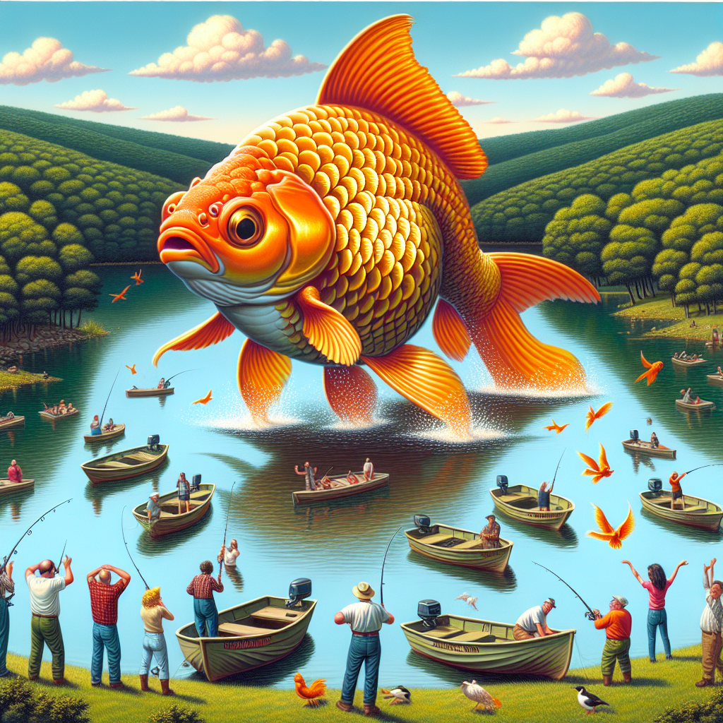 In a bizarre incident that has left scientists scratching their heads and citizens fleeing for their lives, a gargantuan goldfish, dubbed “Goldie-Meg,” has been discovered lurking in the depths of a Pennsylvania lake. The behemoth fish, measuring a whopping 10 feet in length and weighing a staggering 500 pounds, is believed to have originated from a careless pet owner’s reckless release of a common household goldfish.