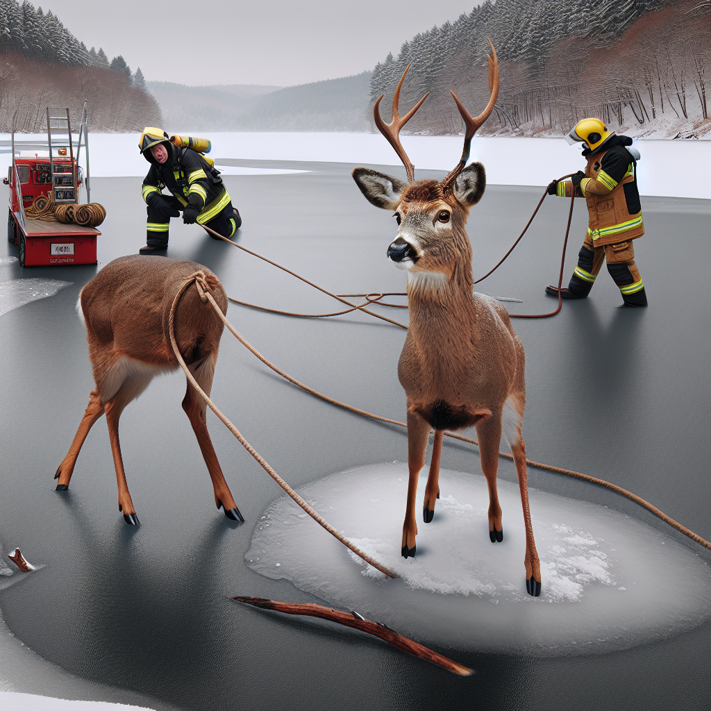 In a jaw-dropping, heart-stopping, and downright unbelievable turn of events, a drama-filled rescue mission was undertaken yesterday evening when a daring deer named “Bucky” took an unplanned swim in the frozen reservoir of Doom… er, we mean, in the serene and peaceful Lake Calmwater.