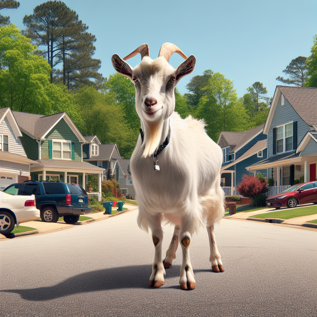 BREAKING: GOAT ON THE LOOSE! In a bizarre incident that has left authorities baffled and residents bewildered, a daring goat made a daring escape from a local farm and is currently roaming free in the suburbs of Duluth, Georgia
