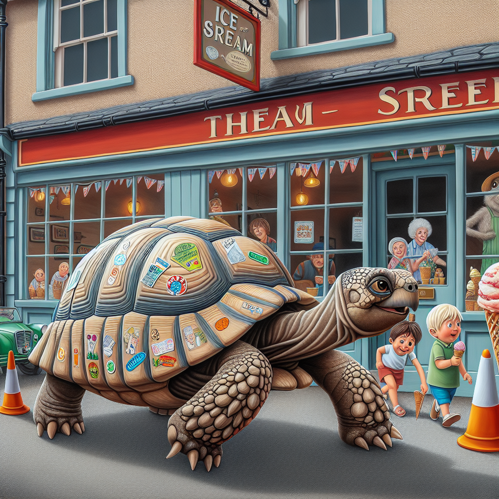 BREAKING: Tortoise on the Lam! In a daring escape that has left animal lovers agog, a feisty tortoise named Shelly made a break for it from her cozy home in the quaint English town of Littleton, only to be discovered two weeks later in the most unlikely of places: outside an ice cream parlor, a whopping 2