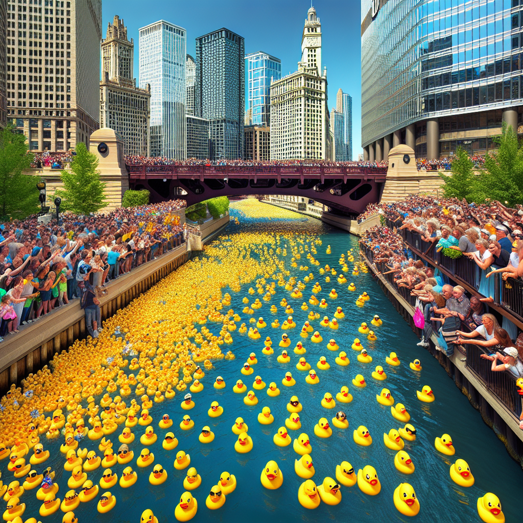 Headline: Chicago River Hosts the Most Important Race of the Year — 82,000 Rubber Ducks Compete for Glory In a breathtaking display of athletic prowess, 82,000 rubber ducks took to the waves of the Chicago River this past weekend for the annual Great Chicago Duck Race