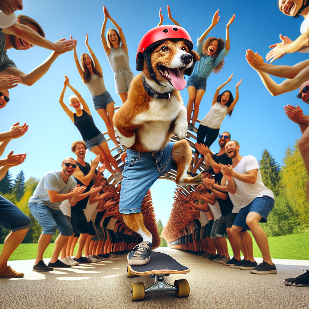 In a spectacle that left onlookers paws-itively awestruck, a death-defying dog named Max zoomed through a human tunnel made up of a staggering 427 people standing with their legs apart, shattering the previous Guinness World Record for the longest human tunnel ever skateboarded through!