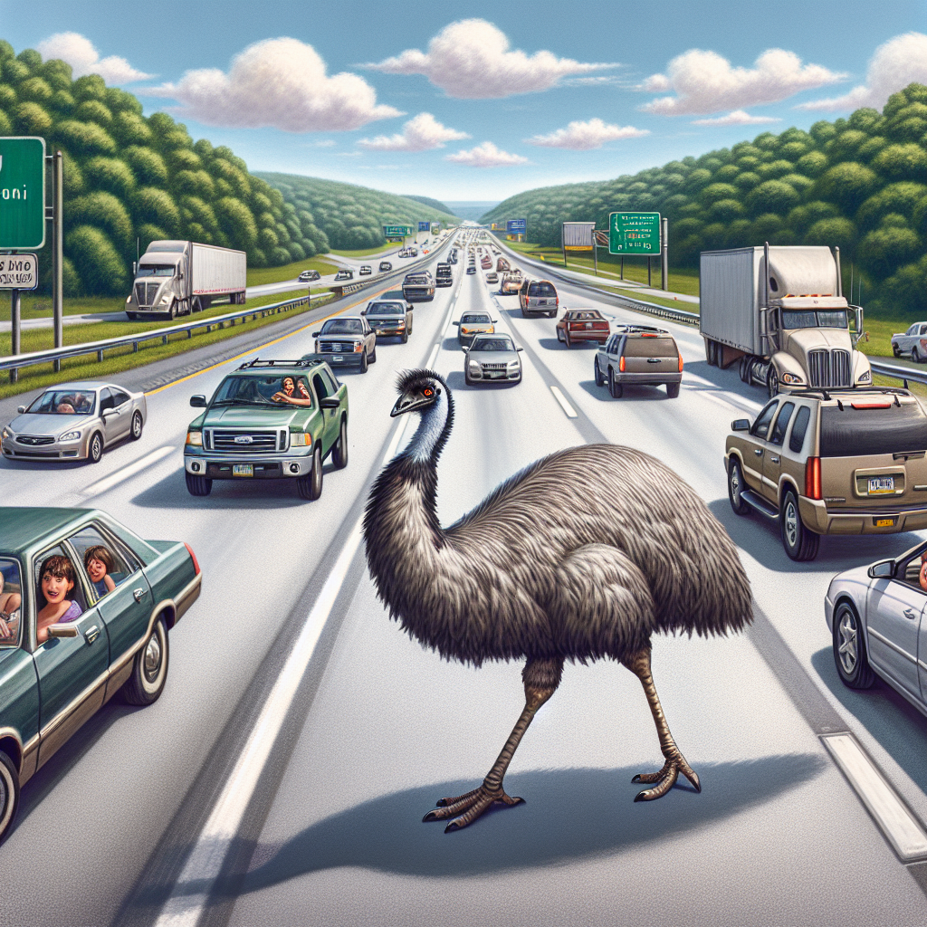 Emu Takes Impromptu Highway Tour, Forgets the GPS In a thrilling game of chicken on Pennsylvania’s highways, an emu, presumably having a mid-life crisis or perhaps just a desperate longing for adventure, broke free from its trailer and decided that a leisurely stroll along Interstate 95 was just what it needed