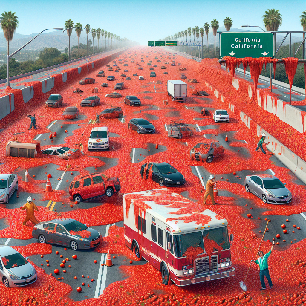 BREAKING: California Highway Turns into Giant Tomato Sauce Factory as Truck Goes Rogue!
