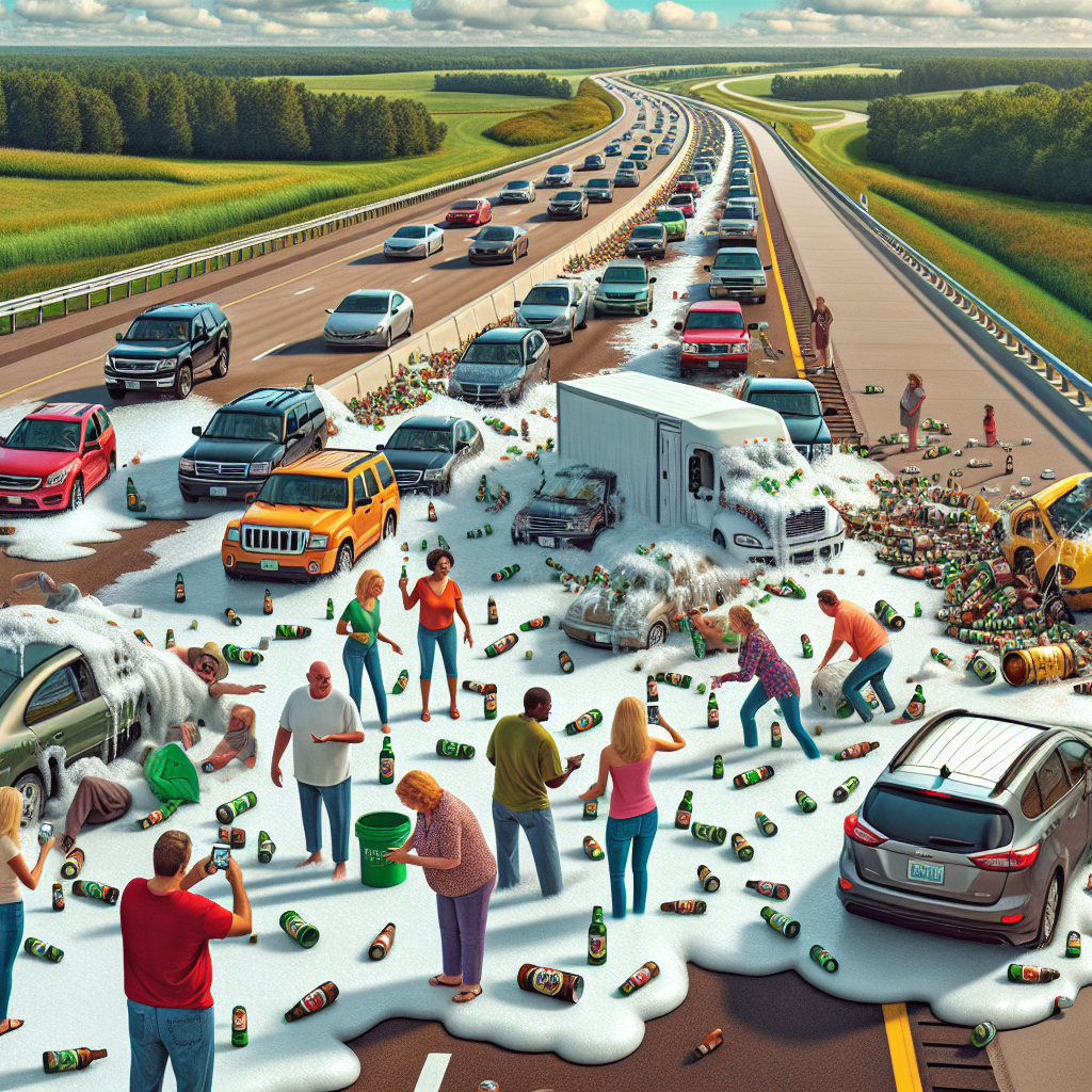 “We’re doing our best to clean up the mess, but it’s like trying to soak up an ocean,” said a DOT spokesperson. “We’ve had to call in a team of hazmat experts, and even they are having trouble keeping up with the sheer volume of beer.”