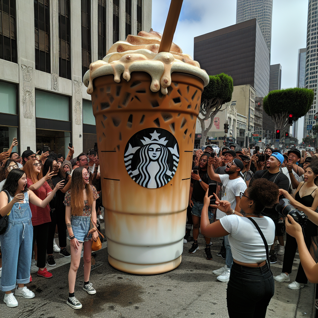 BREAKING: WORLD’S LARGEST ICED LATTE SERVED IN 11-FOOT-TALL CUP, CAUSES NEIGHBORING BUILDINGS TO SHUDDER In a jaw-dropping, heart-stopping, and downright unbelievable display of caffeine-fueled excess, a team of baristas at “The Daily Grind” coffee shop in downtown Los Angeles has successfully crafted and served the world’s largest iced latte – a behemoth of a beverage that stands at an astonishing 11 feet tall and 4 feet wide