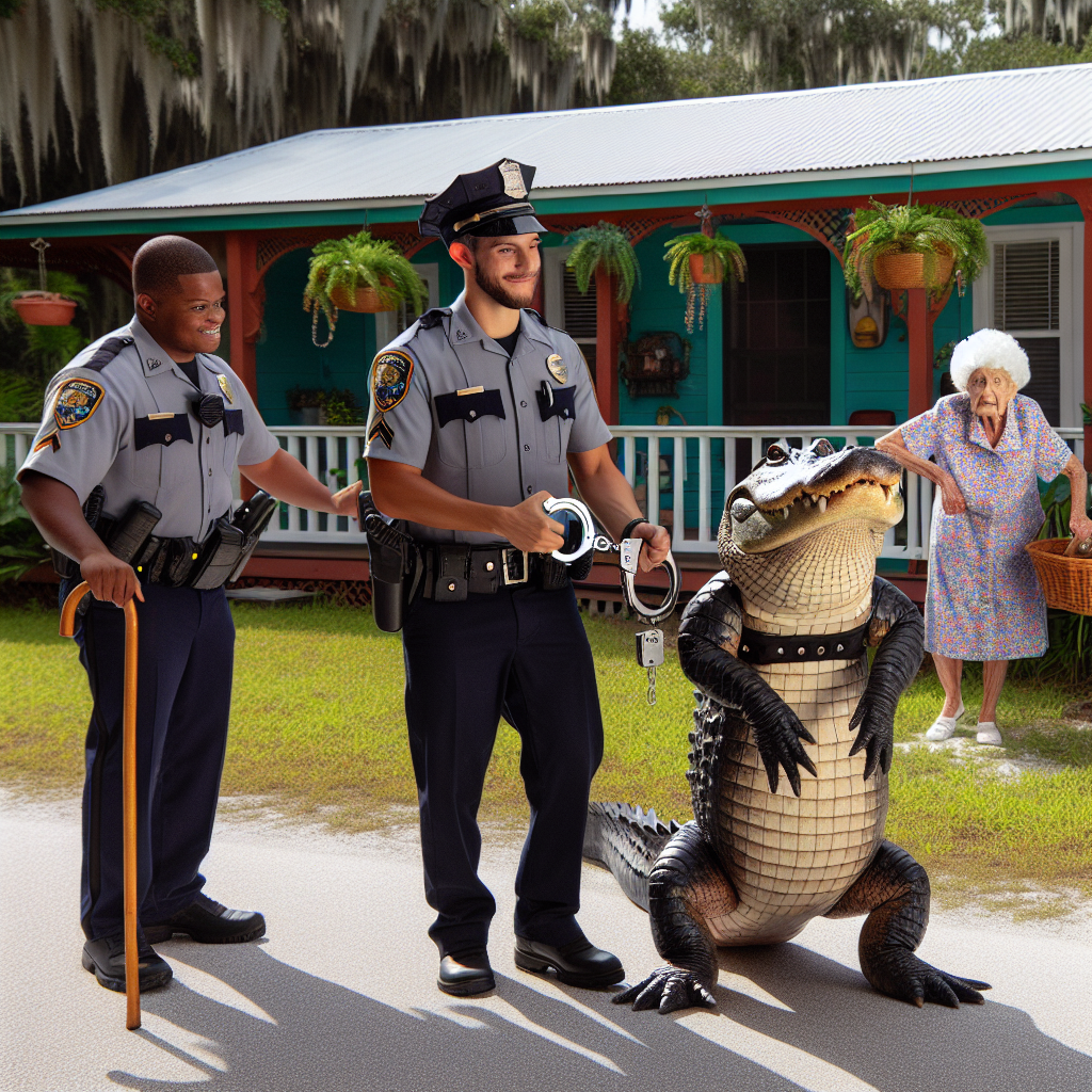 In a bizarre incident that has left residents of Sunnyville, Florida, shell-shocked, a feisty alligator was taken into custody yesterday evening at the residence of 104-year-old granny, Agnes P. Bottomsworth.