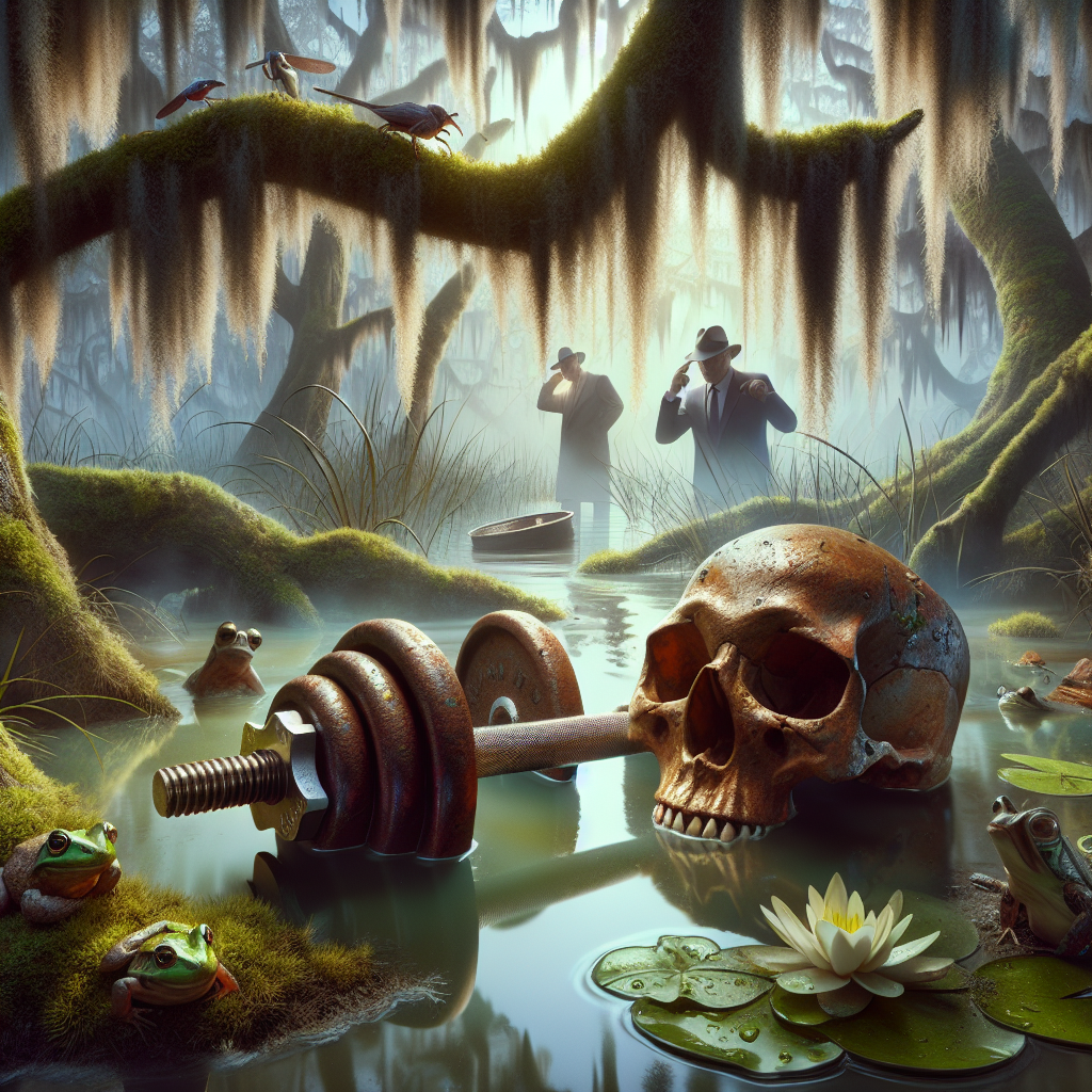 **BREAKING: Bizarre Bayou Bafflement as Skull-Dumbbell Combo Leaves Detectives Dumbfounded**