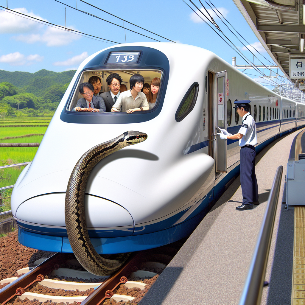 Tokyo, Japan – In a shocking turn of events, one of Japan’s notoriously punctual bullet trains, the Shinkansen, was brought to a screeching halt for a whopping 17 minutes yesterday evening after a slithery stowaway was discovered in a passenger car.