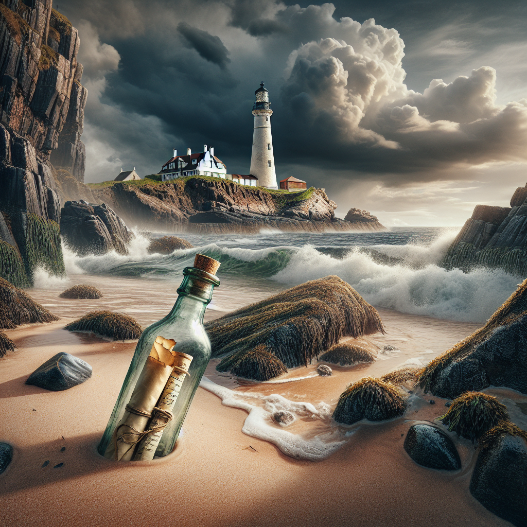 The aged glass bottle, partially buried in the dusty lantern room floor, was stumbled upon by Lighthouse Keeper, Angus McTavish, while searching for a lost snack. As he brushed away the cobwebs, he noticed a faded label reading “FOR THE EYES OF THE MOST CURIOUS ONLY” and a scribbled note that read: