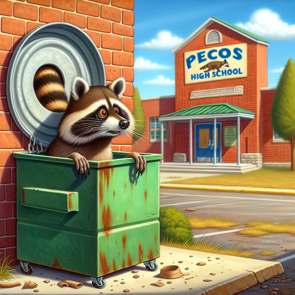 In a bizarre incident that has left residents of the small town of Pecos, Texas, scratching their heads, a mischievous raccoon found itself in a sticky situation when it got its head stuck in a hole in a dumpster at Pecos High School.