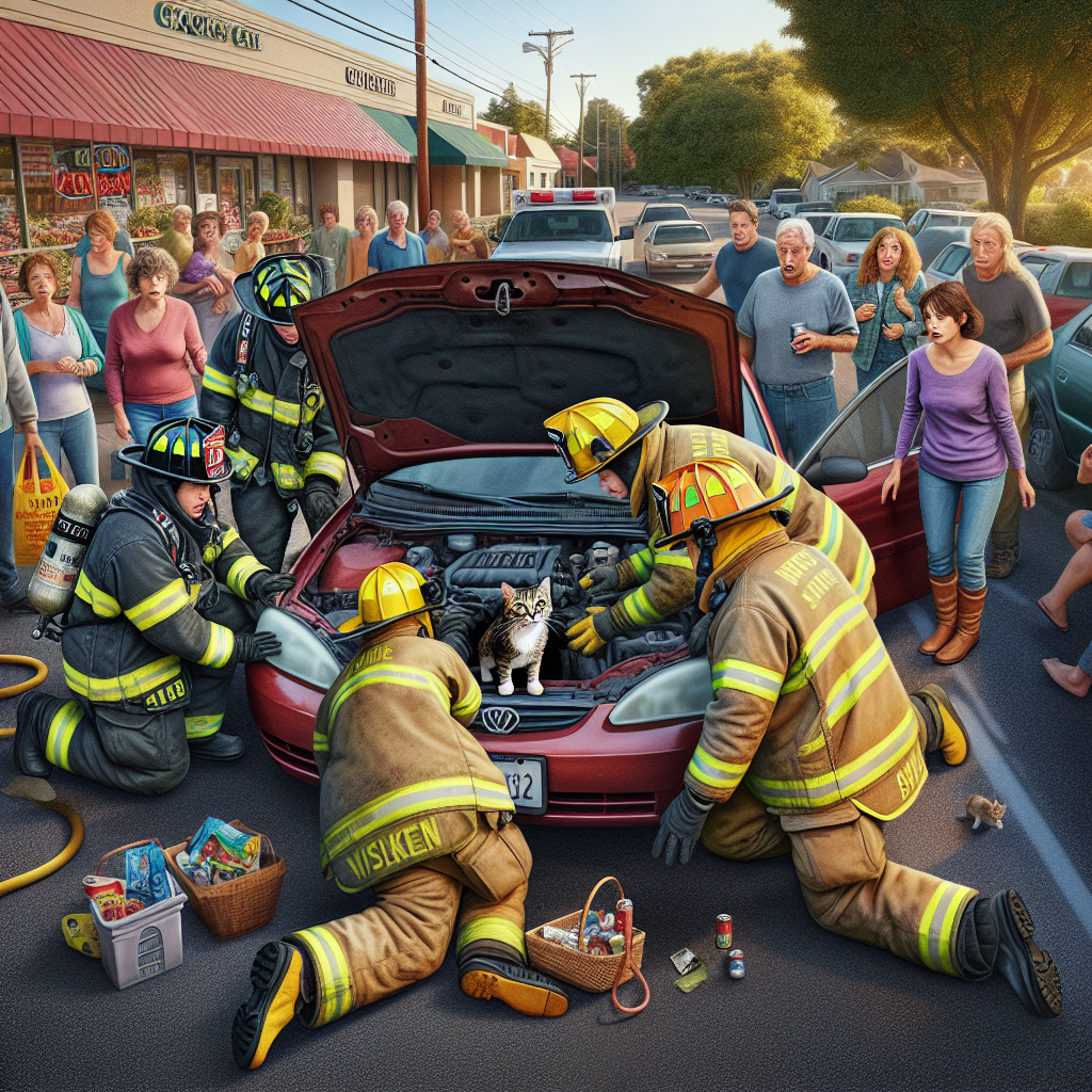 The firefighters, still shaken by the ordeal, were seen laughing and high-fiving each other as they returned to their truck. “Just another day on the job,” said Firefighter Smith with a chuckle. “Although, we did have to add ‘cat-rescue-from-engine’ to our list of emergency services. It’s a new one, folks!”