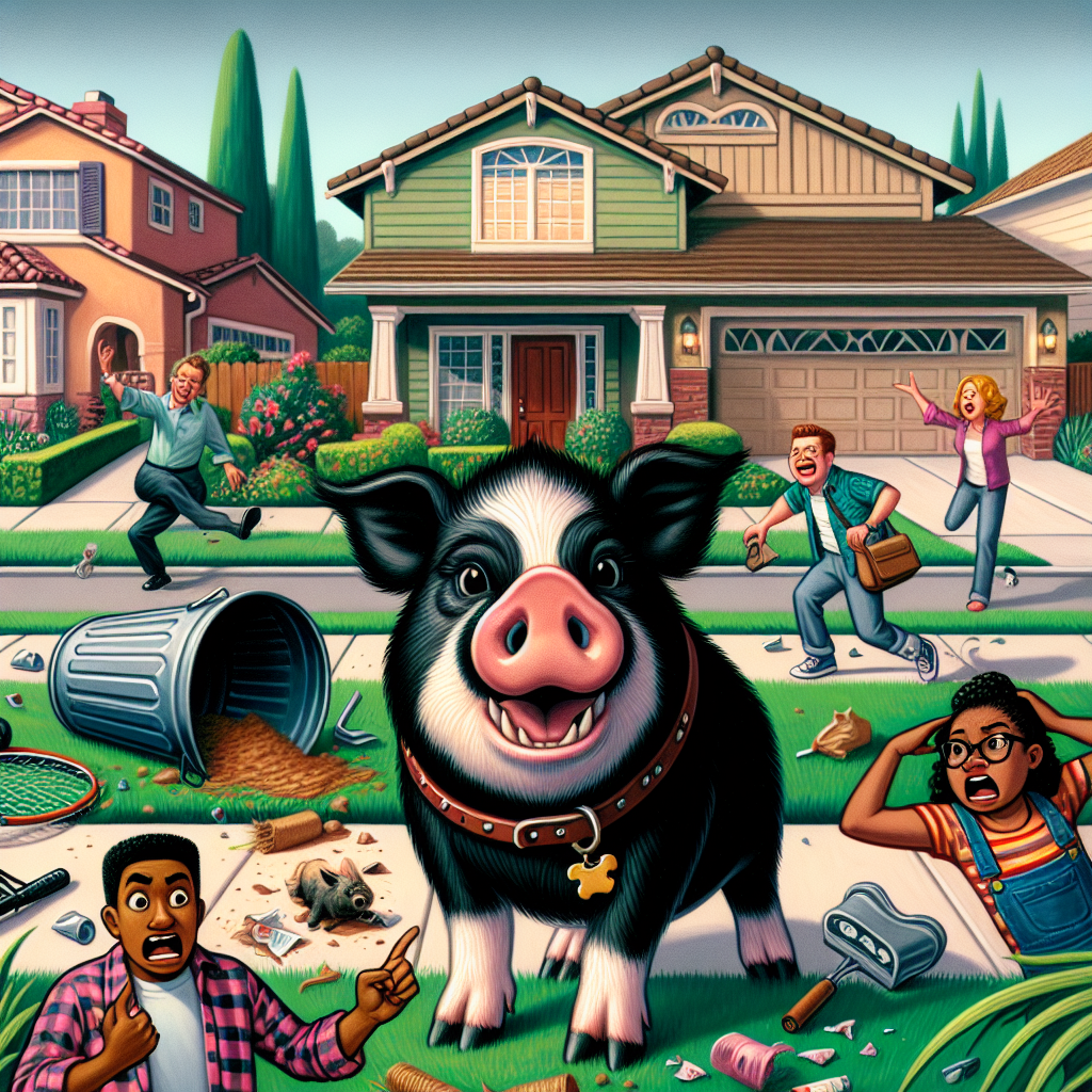 In a bizarre saga that has left residents of a quiet California neighborhood scratching their heads and fuming, a marauding pet pig named Wiggly has been wreaking havoc on the community. The porcine perpetrator, described as a “pig of mass destruction” by local authorities, has been escaping from its owner’s property on a daily basis, leaving a trail of devastation and despair in its wake.
