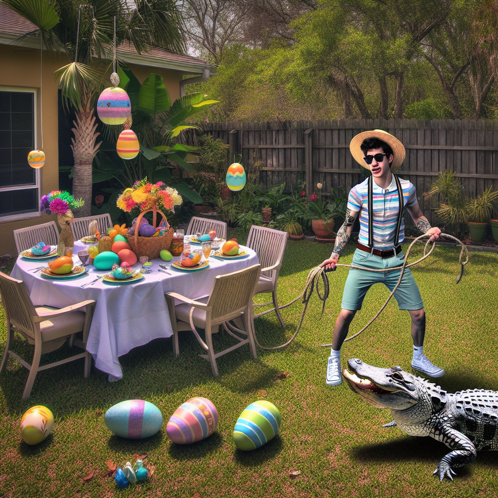 BREAKING: Florida Man’s Easter Dinner Interrupted by Gator Caper In a bizarre incident that has left residents of Sunnyville, Florida, in stitches, 32-year-old Bubba Jenkins was forced to abandon his Easter dinner plans to wrangle a massive alligator that had wandered into his backyard