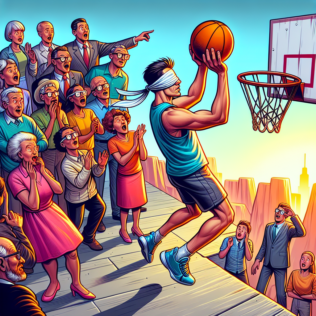 BREAKING: Arizona Man’s Blindfolded Basketball Shot Defies Logic, Stuns Onlookers, and Shatters World Record In a jaw-dropping, awe-inspiring, and utterly unbelievable display of athleticism and sheer luck, 32-year-old Bubba “The Bullseye” Jenkins of Tucson, Arizona, has set a new Guinness World Record for the longest blindfolded basketball shot in history