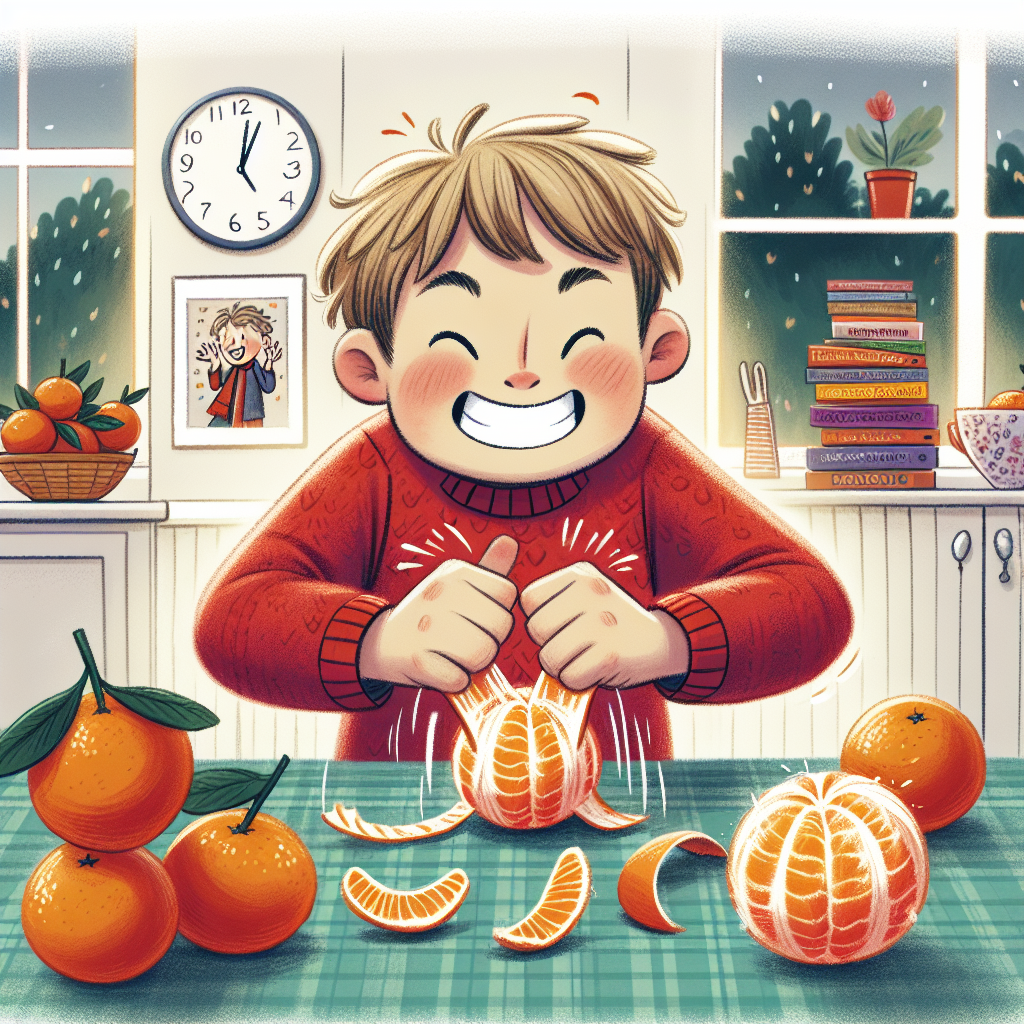 BREAKING: BRITISH BOY DEFIES ODDS, PEELS FOUR MANDARIN ORANGES IN RECORD-BREAKING 1 MINUTE In a jaw-dropping display of citrus-stripping prowess, 9-year-old British sensation, Timmy Thompson, has stunned the world by peeling not one, not two, not three, but FOUR Mandarin oranges in a blistering 60 seconds