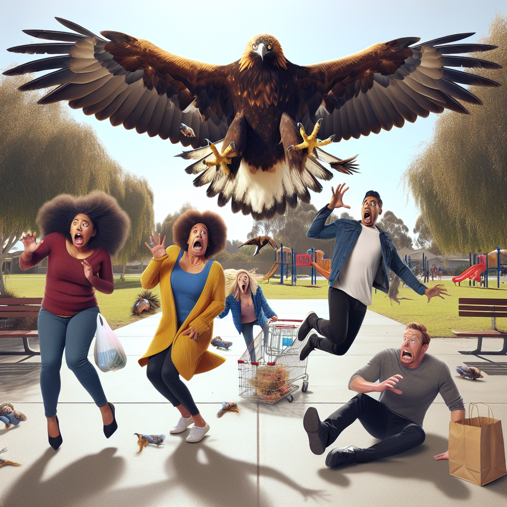 BREAKING: FEATHERED MENACE ON THE LOOSE! In a shocking and terrifying turn of events, a brazen young golden eagle has launched not one, not two, not three, but FOUR attacks on humans in the past week, leaving a trail of screams, flailing limbs, and one very traumatized toddler in its wake