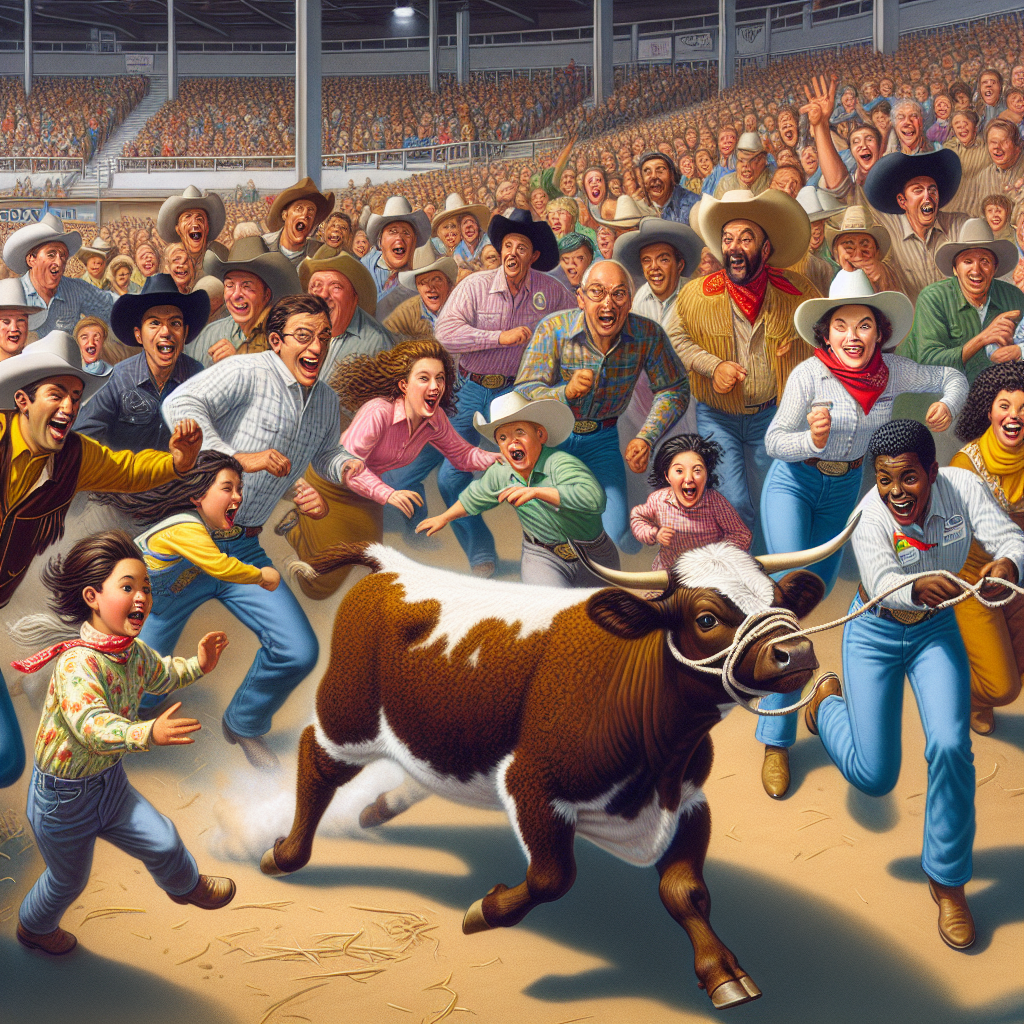 BREAKING: HEIFER ON THE LOOSE! PANDEMONIUM ERUPTS AT HOUSTON LIVESTOCK SHOW AND RODEO Houston, TX – In a jaw-dropping display of bovine bravery, a feisty heifer named “Bessie” broke free from her handlers and sent the crowd into a frenzy at the Houston Livestock Show and Rodeo yesterday evening