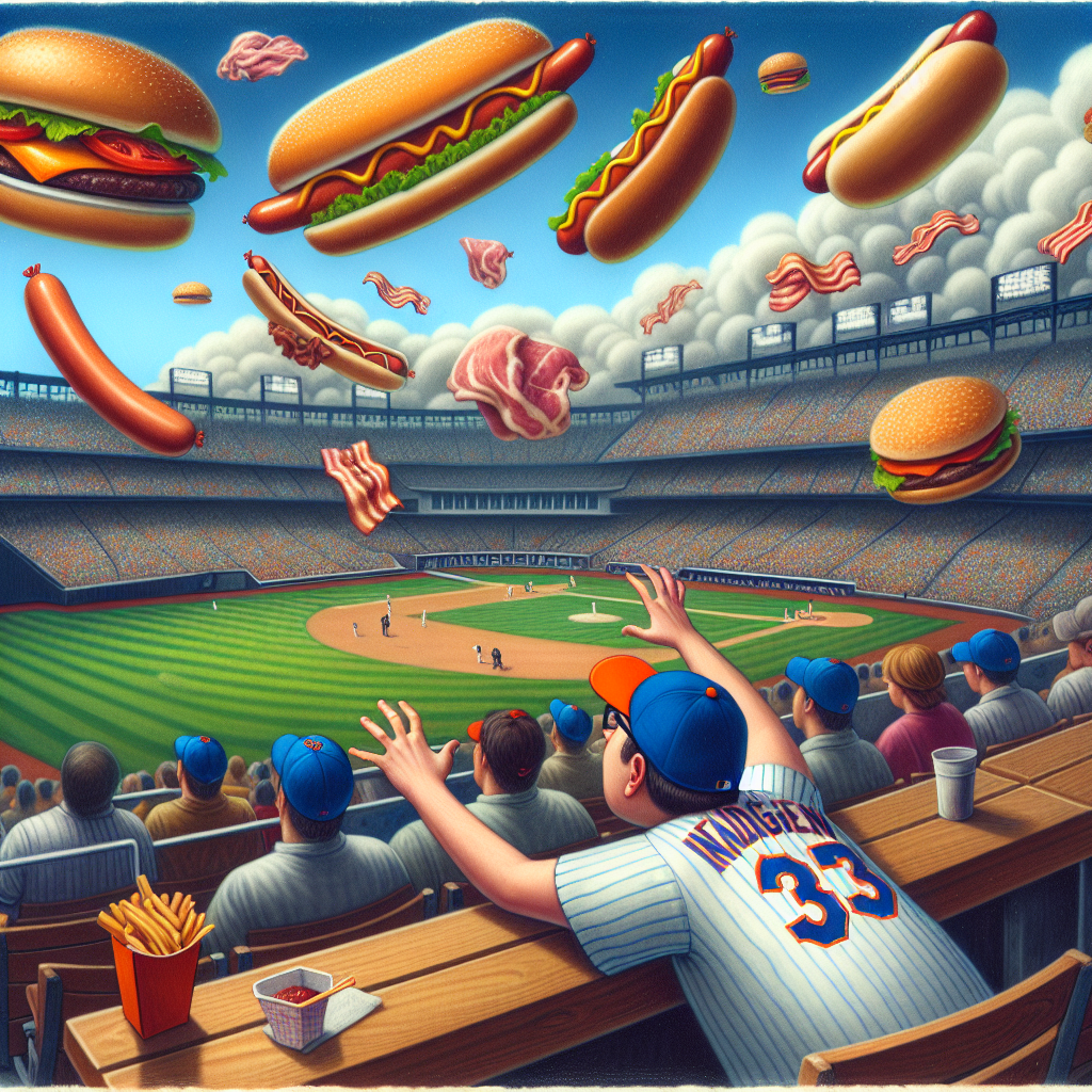 BREAKING: Mets Fan Literally Rained On With Meat, Forced to Abandon Ship in 9th Inning QUEENS, NY – In a bizarre incident that has left the sports world scratching its head, a New York Mets fan was pummeled with a barrage of moderately priced, meaty treats during the team’s thrilling victory over the Chicago Cubs at Citi Field on Tuesday night