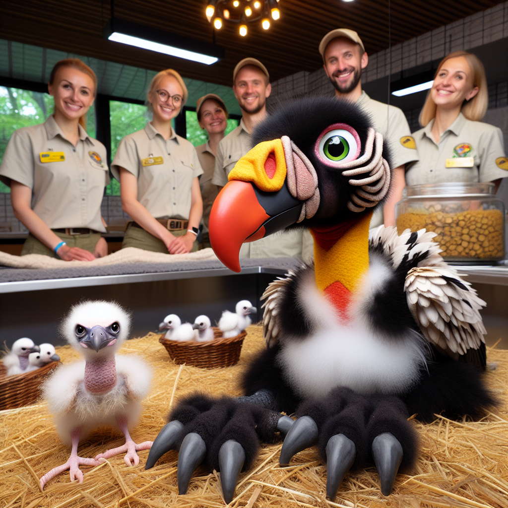 BREAKING: Bronx Zoo’s Royal Treatment: Vulture Chick Gets Royal Upbringing with a Twist! In a bizarre and adorable turn of events, the Bronx Zoo in New York has welcomed its first king vulture chick in 30 years, and the little ball of fluff is getting the royal treatment – literally! To ensure the chick’s survival and give it the best possible start in life, zookeepers have taken an unconventional approach: they’re raising it with a handmade, animatronic mother vulture puppet