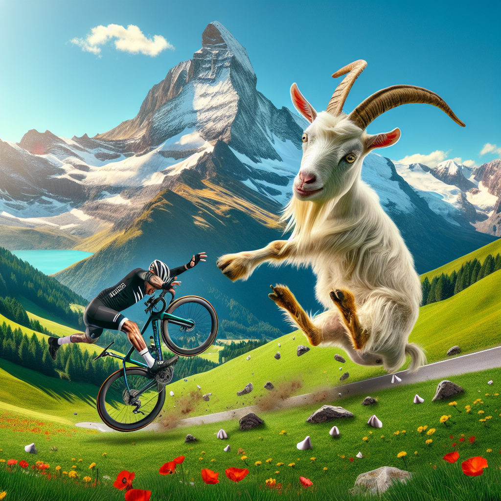 BREAKING: Kiwis in Shock as Cyclist Takes Down Giant Goat on Italian Mountainside In a bizarre incident that has left the cycling world aghast, New Zealand cyclist, Nigel Nelson, collided with a gargantuan goat on stage 10 of the Giro d’Italia yesterday, sending both the rider and the caprine behemoth tumbling to the ground