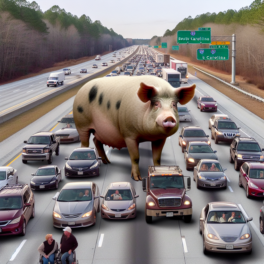 BREAKING: PIG-GATE ROCKS I-95! In a bizarre incident that has left motorists and authorities alike in stitches, a rogue pig brought traffic to a standstill on a busy stretch of I-95 in South Carolina yesterday evening