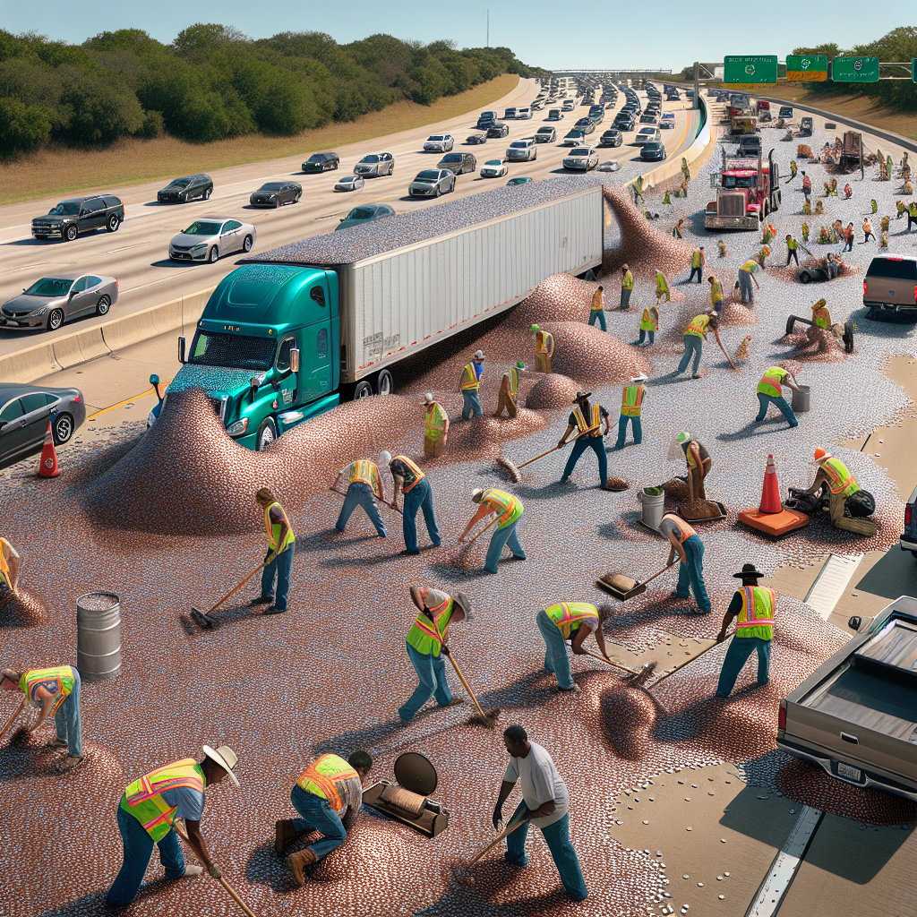 Everything’s Bigger in Texas: TxDOT Steps Up to the Plate with Dime of a Clean-Up Job In a jaw-dropping turn of events, the Texas Department of Transportation (TxDOT) found themselves in a peculiar situation – dealing with millions of dimes in a cleanup operation after an unfortunate truck overturn