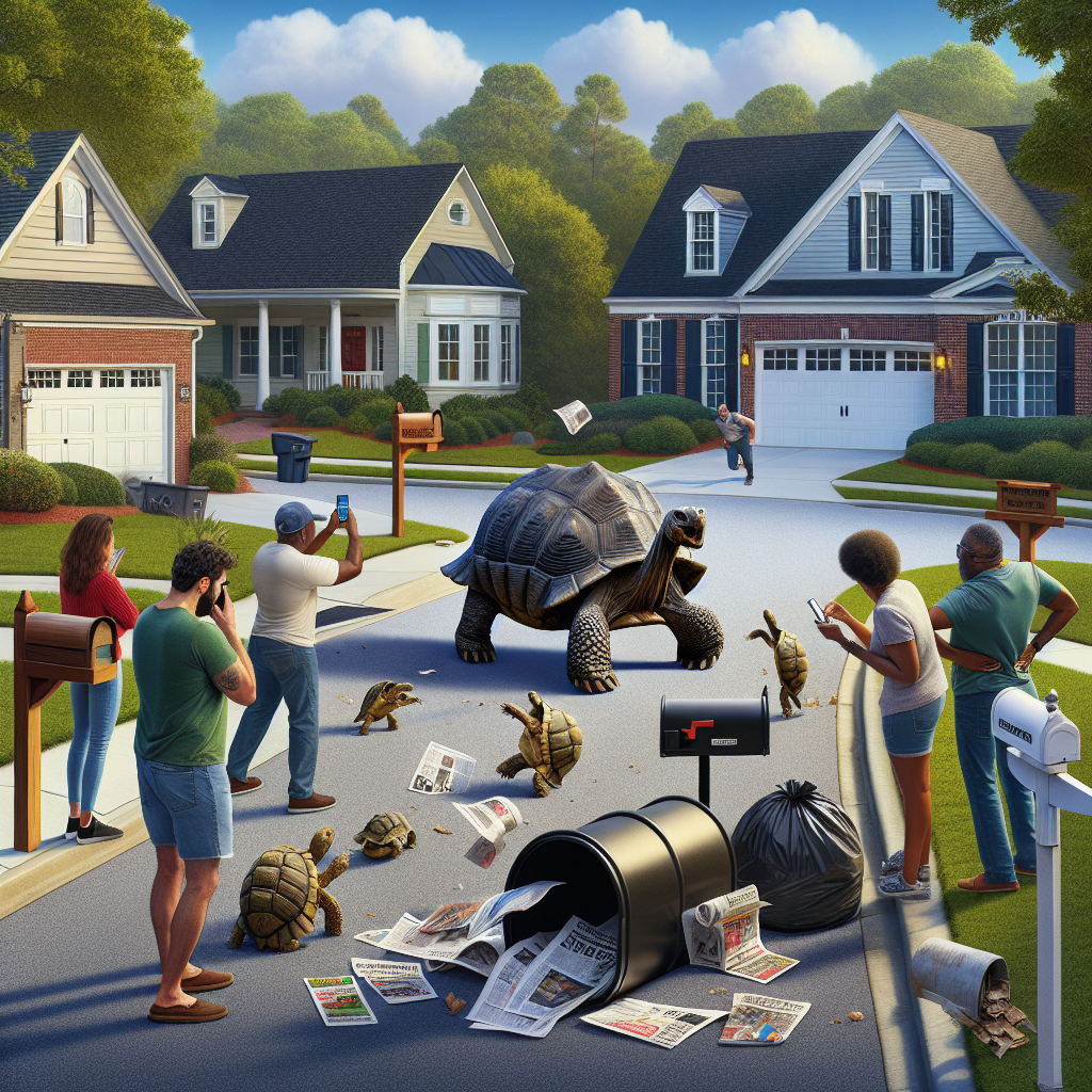 BREAKING: ROGUE TORTOISE ON THE LOOSE, WREAKING HAVOC IN SUBURBAN NEIGHBORHOOD COLUMBIA, SC – In a bizarre incident that has left residents scratching their heads, a tortoise on the lam has been spotted roaming the streets of a quiet suburban neighborhood in South Carolina