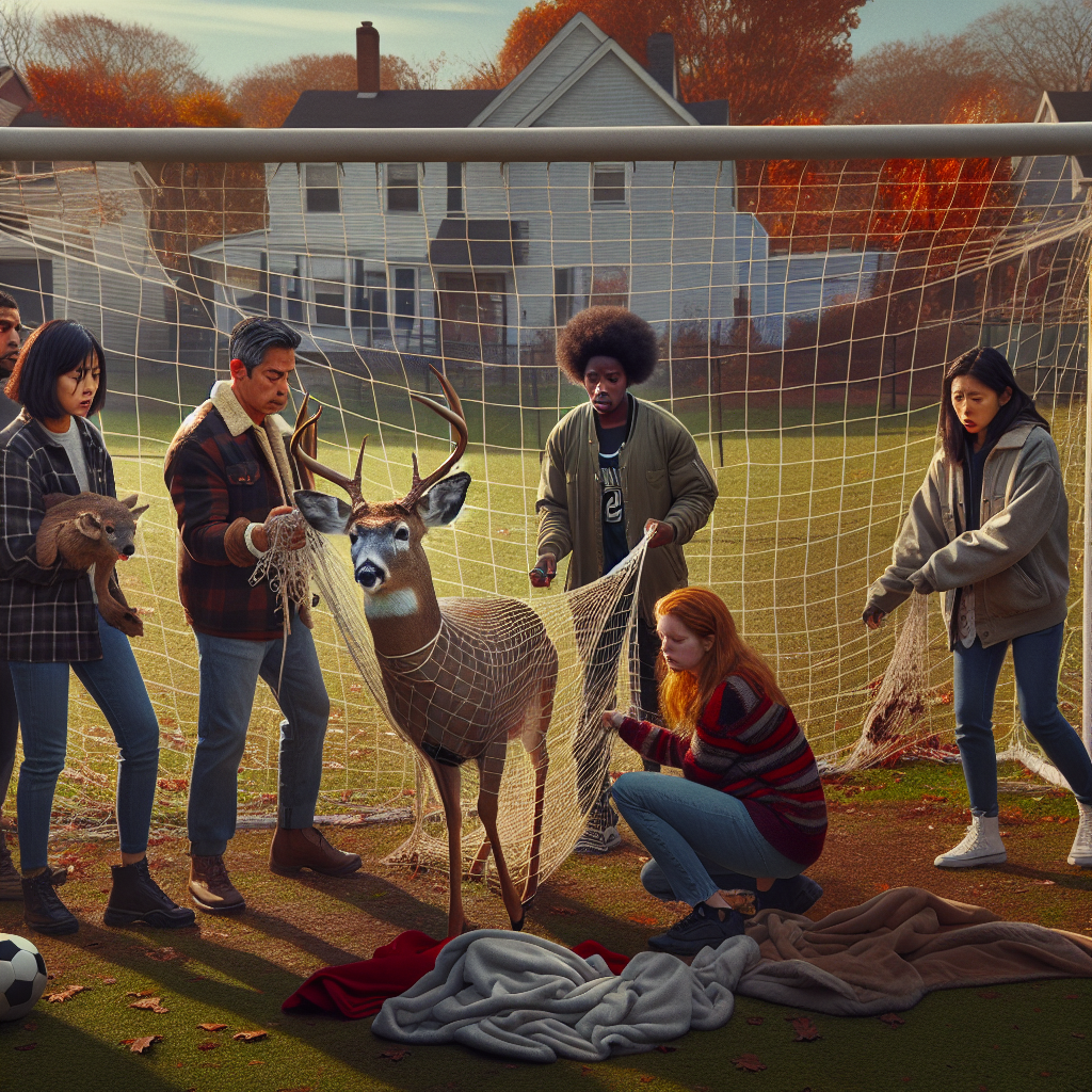 In a thrilling twist of fate that can only be described as a set piece straight out of an Oscar-winning blockbuster, a deer found itself entangled in a soccer net in the heart of suburban New York this week. This riveting tale of survival and sportsmanship unfolded on a seemingly average Tuesday afternoon, transforming a harmless soccer practice into a scene that wildlife filmmakers could only dream of.