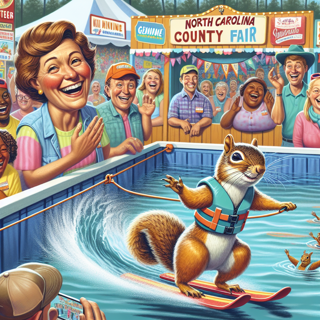 In a move that has left fairgoers aghast and bewildered, a group of enterprising squirrels have taken to the waters of North Carolina’s latest county fair, water-skiing their way into the hearts of attendees everywhere. Led by the fearless Gemma, a grey squirrel with an apparent flair for the dramatic, this troupe of tree-dwelling thrill-seekers has been sending shockwaves through the agricultural community.